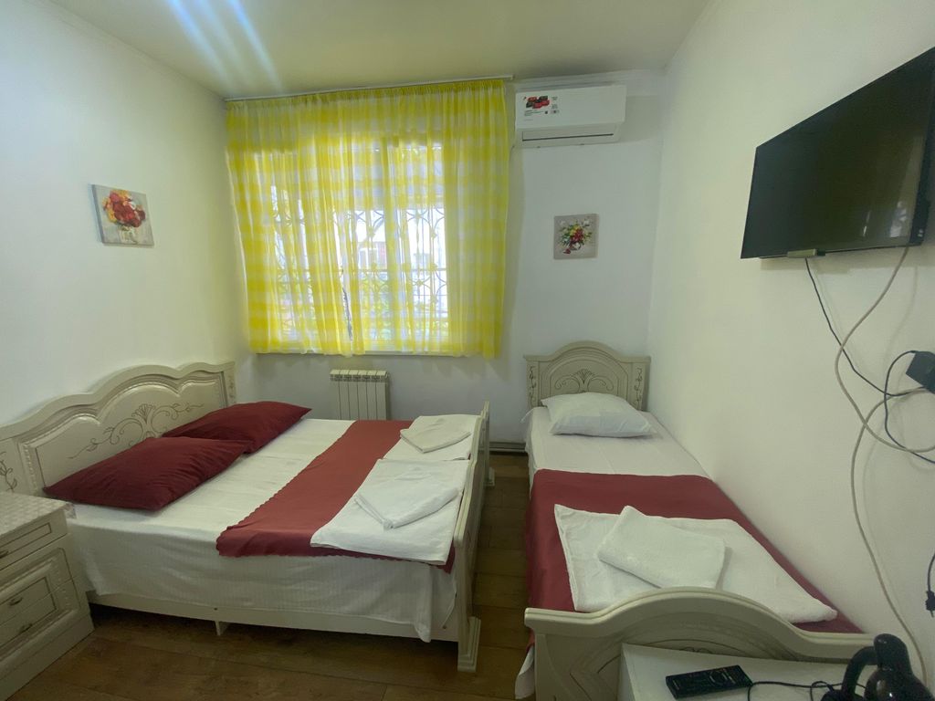 Гостевой дом пальма расположен в самом центре адлера. Номерной фонд: 7 номеров. Номера расположены на 2 и 3 этажах. На первом этаже просторная общая кухня для самостоятельного приготовления пищи. Кухня оснащена всем необходимым: газовая плита, два больших холодильника, микроволновая печь, вся необходимая посуда. На каждом этаже имеется дополнительный холодильник для напитков. С каждого этажа есть дополнительный выход на крытую террасу. Каждая терраса оснащена садовой мебелью и чайниками. До пляжа "чайка" 5-7 минут пешком. Вокзал в 5 минутах езды на автомобиле или 20-25 мин пешком. 3 остановки на общественном транспорте. Аэропорт в 10 минутах езды на автомобиле. В пешей доступности (1-2мин) магазины, столовые, кафе, салоны красоты и прочее.