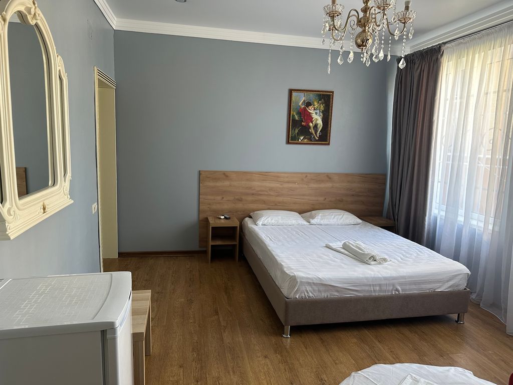 Гостевой дом золотой песок расположился на берегу черного моря в тихом и уютном районе курортного посёлка Вардане. Комфортный обустроенный галечный пляж курорта с торговыми палатками, кафе, пунктом проката находится в 5-7 минутах неспешной ходьбы по ровной асфальтированной дороге, без необходимости переходить автодорогу, т. к на случай высокого дорожного трафика, дорогу можно перейти по пешеходному мосту, который находится непосредственно в месте перехода дороги. В шаговой доступности супермаркет магнит, пятерочка, различные кафе, столовые, почта, отделение сбербанка, банкоматы, поликлиника, аптека, до центра поселка - 200 метров. На территории гостевого дома золотой песок к вашим услугам: Бассейн для взрослых и детей (6, 5х6, 5 метров, глубина 1, 7 метра), просторный зелёный двор, мангал, бесплатный доступ в интернет (wi-fi), круглосуточное видео-наблюдение. Номерной фонд отеля располагает: 2-х, 3-х, 4-х и 5-и местными номерами со всеми удобствами. В каждом номере имеется кондицио