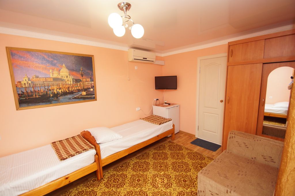 Если вы хотите отдохнуть у моря со всеми удобствами по разумной цене - вы попали именно туда! Наш дом расположен в районе спортивной базы «Динамо» и городского парка «Комсомольский”. Расстояние до моря – 500 метров. Ближайшие пляжи - "Жемчужный" (песчаный), "Баунти" (песчаный), "Суворинские камни" (галечный). Рядом есть точки общественного питания. В 300м. От дома – круглосуточная аптека. До Крымского рынка 7-8 мин. К центральной части города 30 мин. По набережной пешком или 10 мин на маршрутке. В 200м. От дома – городской парк с различными аттракционами для детей. Для отдыха предлагаются номера на 2-х (всего 5 номеров) и 3-х человек (всего 1 номер). Номера на 2-х человек - со всеми удобствами. В каждом номере новая мебель, холодильник, кондиционер, кабельное тв, санузел (душ с горячей водой, умывальник, туалет). В 2-х номерах на 2-м этаже можно организовать дополнительное 3-е место на мини-диване. Номер на 3-х человек - со всеми удобствами. Можно ор