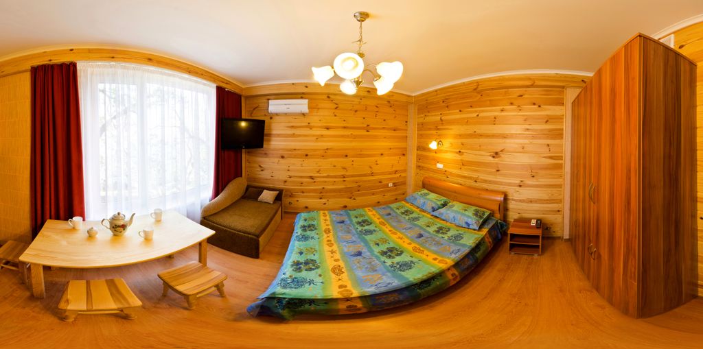 Удобные современные однокомнатные номера с видом на море, функциональная территория, близость к морю (через новый сквер прямо на берег) и инфраструктура посёлка сделают ваш отдых незабываемым. В настоящее время предлагаем проживание в номерах на 4-х гостей (25 кв м)- двуспальная кровать и двухместный диван, и на 3-х гостей (20 кв м) — двуспальная кровать и одноместный диван. В каждом номере: одна комната- отделанная деревом, двуспальная кровать, диван, комод, шкаф, телевизор, кондиционер, обеденный стол, кухонный блок с набором посуды, варочной панелью и холодильником, санузел с душевой кабиной. На каждом этаже по два номера с видовой террасой на море и обеденными столами. Супермаркет, кафе, столовая, сквер, форосский парк, овощные палатки, пляж в шаговой доступности.