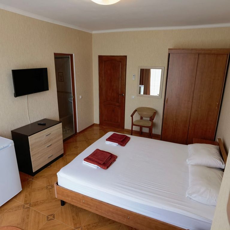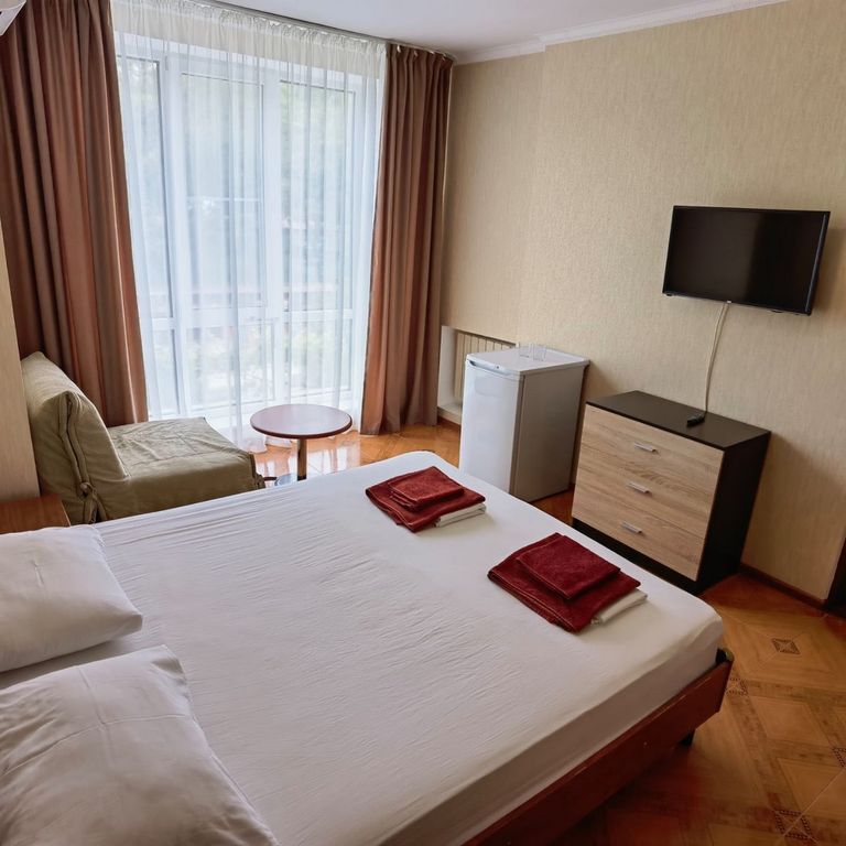 Гостевой дом расположен в тихом живописном районе Адлера, в 10–12 минутах ходьбы от моря. Путь на пляж пролегает через круглый год зелёный парк курортного городка. Пляжи бесплатные, чистые и облагорожены, с мелкой галькой, иногда переходящей в песок. Из окон лицевой части гостевого дома открывается вид на огромную, утопающую в зелени территорию санатория «Известия». В шаговой доступности есть всё для качественного отдыха: океанариум, дельфинарий, крытые и открытые бассейны, столовые, кафе и рестораны на любой вкус, магазины, сувенирные лавки, экскурсионные киоски и т. д. Территория гостевого дома — 9 соток, включающая в себя небольшую детскую площадку, сад с мангальной зоной, летнюю кухню с большой террасой (80 кв. м), где под виноградом можно покушать и насладиться пением птиц. Для гостей мы предлагаем 12 номеров различной комфортабельности.