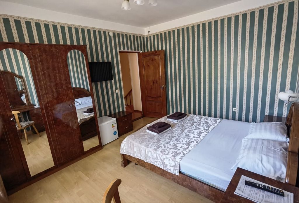 Гостевой дом расположен в тихом живописном районе Адлера, в 10–12 минутах ходьбы от моря. Путь на пляж пролегает через круглый год зелёный парк курортного городка. Пляжи бесплатные, чистые и облагорожены, с мелкой галькой, иногда переходящей в песок. Из окон лицевой части гостевого дома открывается вид на огромную, утопающую в зелени территорию санатория «Известия». В шаговой доступности есть всё для качественного отдыха: океанариум, дельфинарий, крытые и открытые бассейны, столовые, кафе и рестораны на любой вкус, магазины, сувенирные лавки, экскурсионные киоски и т. д. Территория гостевого дома — 9 соток, включающая в себя небольшую детскую площадку, сад с мангальной зоной, летнюю кухню с большой террасой (80 кв. м), где под виноградом можно покушать и насладиться пением птиц. Для гостей мы предлагаем 12 номеров различной комфортабельности.