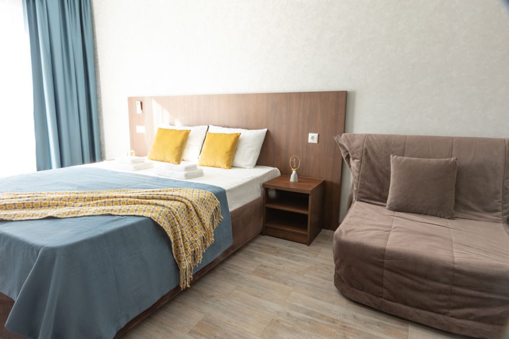 Наш дом 2023 года постройки и выгодно отличается от «типичных» курортных вариантов! Это современное здание, в котором 11 уютных и просторных номеров категории «комфорт» с балконами. В каждом номере есть кондиционер, телевизор, новая мебель и новые постельные принадлежности, бесплатный Wi-Fi. На балконах, оснащенных креслами и кофейными столиками, вы проведете незабываемые минуты, наслаждаясь рассветом или вечерней прохладой. На территории гостевого дома расположен чудесный двухуровневый бассейн с подогревом, поэтому даже в прохладные дни межсезонья ваш отдых будет комфортным и приятным! Вечером наши гости охотно проводят время на просторной и современной летней кухне, оборудованной новой необходимой техникой, где ужинают, жарят шашлыки на мангале или просто наслаждаются звуками живой природы и общением друг с другом. Кухней вы можете пользоваться для приготовления и приема пищи в течение всего дня. Мы находимся всего в пятнадцати минутах ходьбы по равнинной местности от черноморског