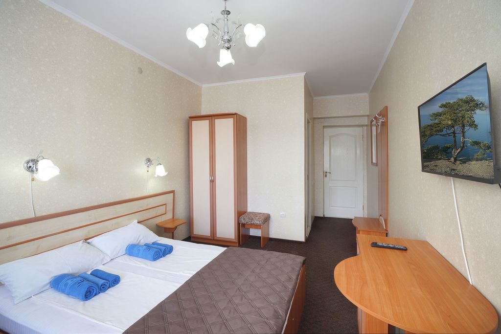 Гостевой дом "Небо" расположился на юго-востоке полуострова - в горном и винном городе Судак. Ежегодно он принимает тысячи гостей со всех уголков нашей необъятной Родины, но при этом каждый найдет в нем свой уголок тишины. Шумная набережная, песчаные пляжи с кварцевым песком, веселые танцы в многочисленных кафе и ресторанах, древняя Генуэзская крепость, пос. Новый Свет, аквапарк, фотозоны - все это Вы найдете в прекрасном городе Судак. "Небо" - уютный гостевой дом на 30 номеров, в каждом из которых есть балкон, телевизор, холодильник, кондиционер, собственная ванная комната с душевой кабиной. Из номеров отеля открывается вид на город или горы. Мы находимся на третьей береговой линии, в пешей доступности от пляжа. Дорога к морю займет не более 15 минут по ровной дороге без спусков и подъемов. Рядом с нами расположено без преувеличения одно из лучших заведений города - кафе/ресторан "HoReCa", где Вы сможете насладиться вкусным ужином или обедом с бокал