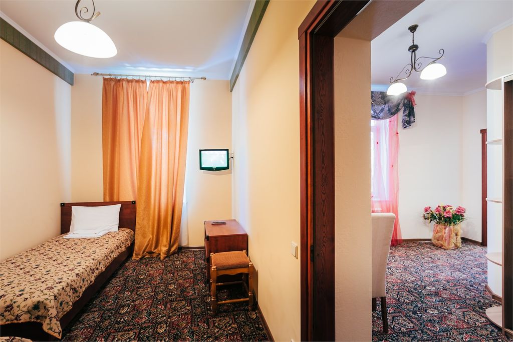 Звукоизолированные номера, в каждом из которых установлен кондиционер, LED-телевизор (с IP-TV), высокоскоростной интернет, сейф, минибар с питьевой водой, фен, современная мебель и сантехника. Номер укомплектован тапочками, халатами, туалетными принадлежностями, мини-упаковками косметики производства Италии, Германии, Финляндии. Во всех номерах выполнен дизайнерский ремонт. Категории номеров – люкс, делюкс. Можно выбрать семейный номер, для двоих и другие варианты достойного проживания. Из каждой комнаты есть выход на отдельный балкон. На первом этаже – общий лаундж / гостиная с телевизором. По утрам подаётся вкусный и сытный завтрак. До пляжа можно дойти всего за 1 минуту. Гостевой дом находится в 70 метрах от пляжа и в 800 метрах от Художественной галереи Айвазовского в Феодосии. К услугам гостей терраса и бесплатный Wi-Fi на всей территории гостевого дома. При размещении детей младше 2 лет на детских кроватках проживание им предоставляется бесплатно. Детская игровая комната гостевог