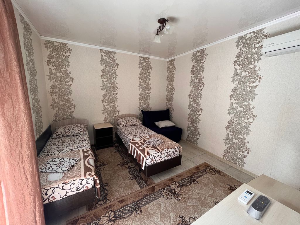 Наш уютный Гостевой дом "Дарья+" расположен в тихом районе курортного посёлка Витязево. Мы расположились в 15 минутах ходьбы от песчаного пляжа, который считается самым лучшим на побережье, в особенности для отдыха с детьми. До Пятерочки и аптеки 350 метров. Так же рядом торговые лавки со свежими овощами и фруктами, банкомат. До остановки общественного транспорта 350 метров. Неподалеку парк аттракционов, аквапарк и прогулочная улица Паралия. К вашим услугам комфортные номера, рассчитанные на двух-, трех-, и четырехместное размещение, а также двухкомнатный номер с кухней, рассчитанный на размещение 5 человек. Каждый номер оборудован всем необходимым: удобная мебель, сплит-система, ЖК-телевизор, холодильник, постельное белье, комплект полотенец на каждого гостя, санузел. Есть кухня для самостоятельного приготовления пищи. В соседнем здании расположена столовая. Территория оборудована всем необходимым для комфортного отдыха. Двор озеленен, есть тенистые места для отдыха