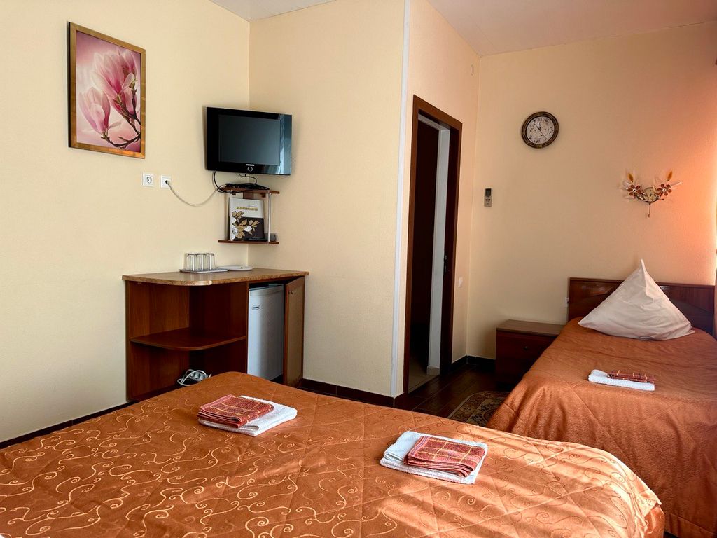 Гостевой дом «Магнолия» занимает уникальное расположение. Путь до моря через парк, под тенью деревьев (7 минут), до главного центрального рынка 5 минут пешком, вблизи, абсолютно, вся инфраструктура. Наш гостевой дом, в первую очередь, направлен на семейный отдых. Для детей представлена оборудованная игровая зона, имеются детские кроватки. В гостинце 12 номеров 2-х, 3-х и 4-х местные. Категории улучшенный стандарт, полулюкс и люкс. В каждом номере : сплит-система; телевизор; холодильник; wi-fi; фен; ванные принадлежности. Заезд после 14:00, выезд до 12 :00. Есть парковочные места.