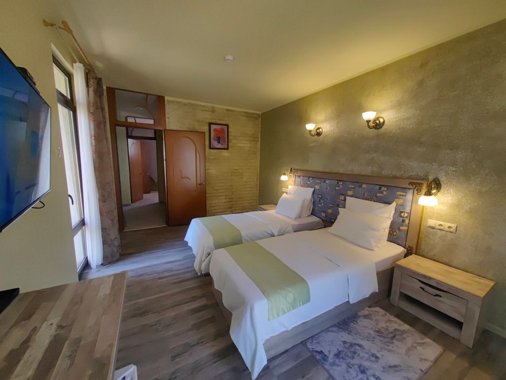 Гостеприимный "Дом Архитектора" готов принять гостей в уютных комнатах в стиле лофт, со всеми удобствами. Всего в наличии восемь комнат. К вашим услугам: крытая парковка на территории, зеленая зона с детской площадкой, также есть выход в лесную зону у подножия горы, теннисный корт, крытый бассейн, сауна, спортзал с настольным теннисом, бильярдная, тир, каминный зал и уютный холл, детский уголок. В течении всего дня, наши гости могут отведать разнообразные блюда и напитки. Можно воспользоваться мангальной зоной. Все услуги и питание, без дополнительной платы. Оплачивается только аренда комнаты. Минимальный срок проживания от 2-х суток. Мы находимся в экологически чистой зоне города-курорта Кисловодска, вне городской суеты и располагаем большой территорией для прогулок. Великолепный горный воздух и пение птиц позволит расслабиться и комфортно отдохнуть. В 150 м. от нас находится автобусная остановка, с которой можно легко добраться до национального парка и центра города. По