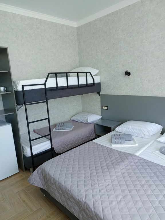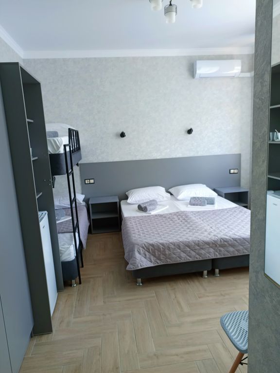 Новый гостевой дом расположен в 5-7 мин от песчаного пляжа и дюн, рядом магазины, аптека, столовые, кафе, аквапарк тики так, остановка общественного транспорта, бювет с минеральной водой. Номера расположены на 2и3 этаже, кухня для самостоятельного приготовления пищи находится на каждом этаже, номера 1, 2, 3 и 4 местные, балкон в каждом номере, кроме одноместного, имеется детская площадка, бассейн
