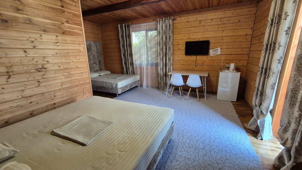 Дом полностью из бруса. Два жилых этажа и цоколь. В цоколе находится кухня и зона отдыха. Парковка во дворе рассчитана на 10 стандартных машин. В комнате может размещаться один ребенок до 4 лет бесплатно на имеющихся местах. При заселении вносится депозит 2000р. Возвращается после сдачи комнаты администратору.
