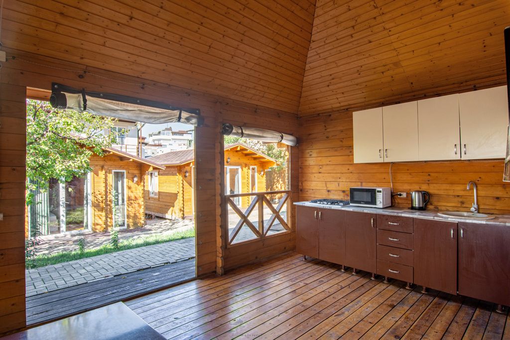 На территории гостевого дома есть мангальная зона, беседка и качели для отдыха, бассейн, охраняемая автостоянка с видеонаблюдением, летняя кухня. Гостевой дом «У Черноморья» находится в тихом спальном районе Геленджика; без шумных заведений, в 13 мин от набережной. Рядом (3 мин) — гипермаркет «Магнит», столовая (5 мин), рынок, автовокзал. Номера отлично подходят для отдыха большой компанией. К вашим услугам 2-х, 3-х, 4-х, 5 и 6 местные просторные уютные номера различных категорий: — номера с удобствами на этаже. В каждом номере есть вся необходимая мебель, телевизор, кондиционер. Кухня, холодильник, душевая, санузел — на 2 номера. — номера стандарт. В каждом номере есть вся необходимая мебель, телевизор, кондиционер, большая душевая, санузел в номере. Кухня общая на 3 номера и во дворе летняя. — номера полулюкс и люкс. В каждом номере: удобная мебель, кондиционер, телевизор, холодильник, кухня, большая душевая и санузел. Вода горячая и холодная круглосуточно. Смена постельного белья че