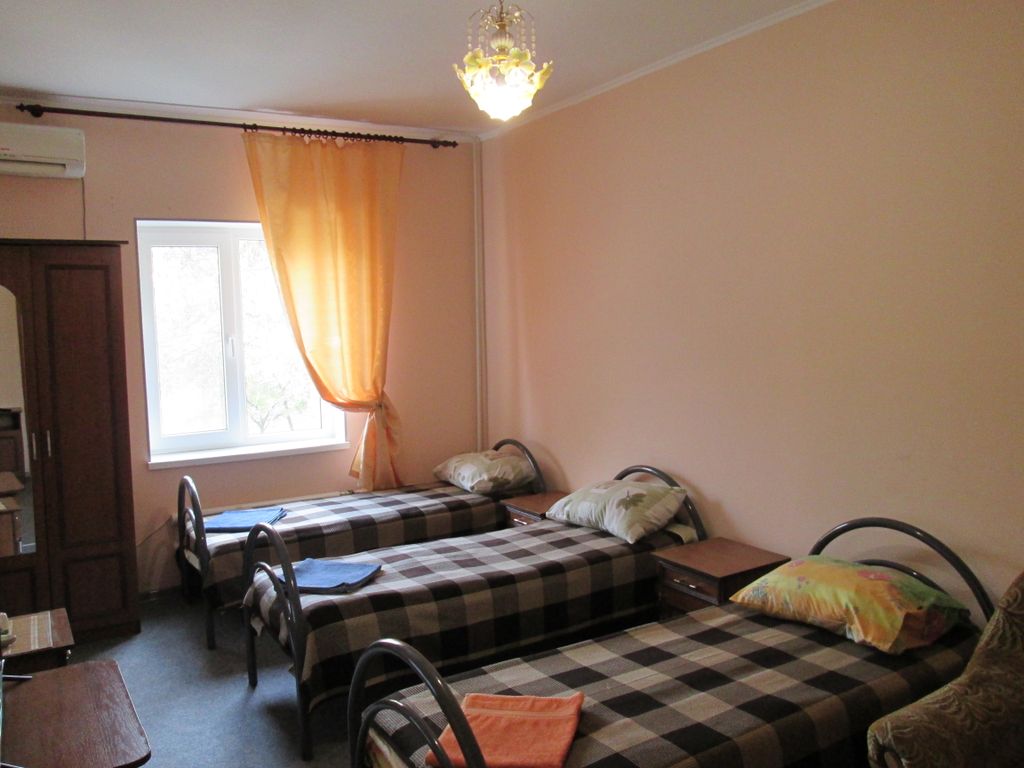 3-этажное здание в итальянском стиле. Все номера с удобствами в номере: душ, туалет, холодильник, телевизор, кондиционер. На первом этаже общая кухня, оборудованная бытовой техникой и посудой. Через дорогу сквер с оборудованной детской площадкой. В шаговой доступности супермаркет и рынок. До оборудованного песчаного пляжа-700 метров.