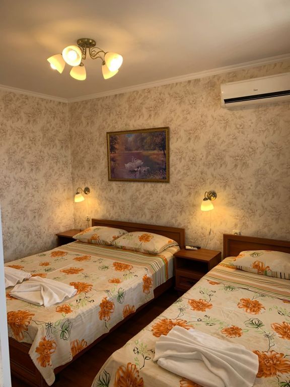 цент Лоо,на равнине.море близко.рядом жд вокзал,остановка,столовые и рестораны,магазины и лавки,рядом набережная,и при всем этом дом находиться в тихом уютном месте. В номерах кондиционеры,холодильники,телевизор,чистое свежее белье,хороший ремонт,новая мебель.Оборудованные всем необходимым кухни.Шикарная терраса с видом на море так же можно пользоваться стиральными и гладильными принадлежностями.есть игровая комната.есть мангальная зона. чистота и уют