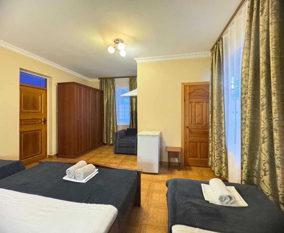 Прекрасное расположение гостевого дома удивит доступностью самых посещаемых мест в адлере. Гостевой дом расположен в центре города, всего в 2 минутах ходьбы от центрального пляжа и всех развлечений. Светлые и уютные номера оформлены в классическом стиле в теплых тонах. В каждом номере есть: жк-телевизор, холодильник, сплит-система, бесплатный wi-fi и собственная ванная комната. Большое количество кафе и столовых, где можно вкусно и недорого покушать. Выбирая гостевой дом русалина- вы получаете комфортный недорогой отдых, уникальное расположение и массу приятных впечатлений! Гостевой дом предоставляет для гостей кухню с необходимыми кухонными приборами, набором посуды и обеденным столом. К гостевому дому прилегает территория, облагороженная цветами.