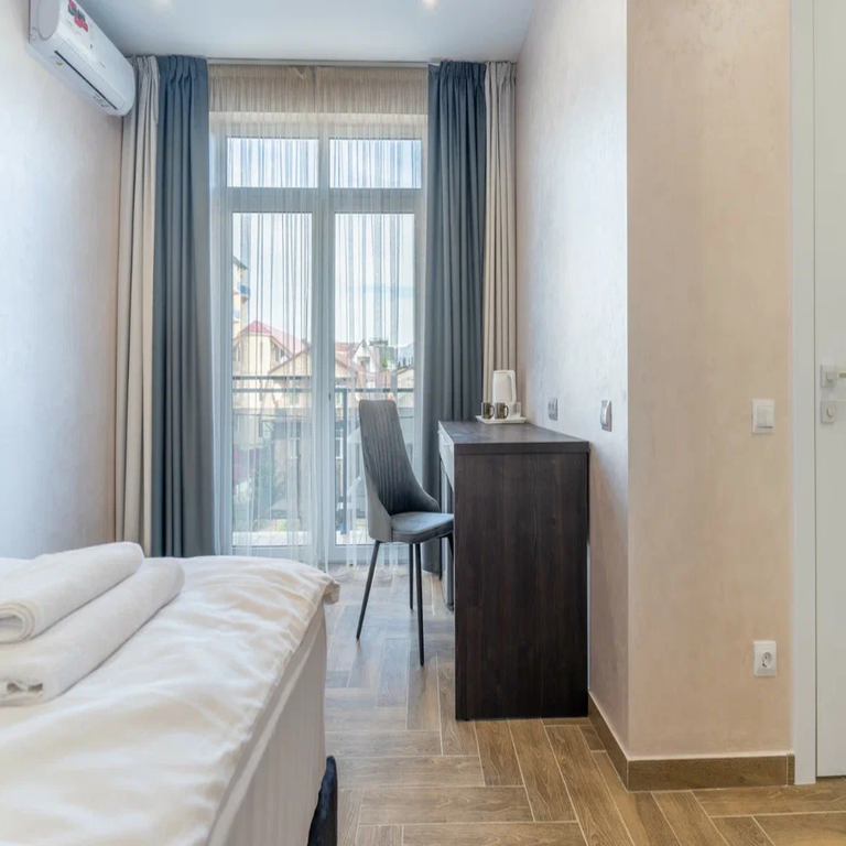 Отель "Грация" расположен в самом центре адлера. Наш отель абсолютно новый, первых гостей мы начали принимать в январе 2025 года. Мы сделали все, чтобы отдых в нашем отеле был для вас комфортным и приятным. В просторных и светлых номерах есть все необходимое для вашего удобства - кровати с ортопедическими матрасами, вместительный шкаф-купе с большими зеркалами в прихожей, полотенцесушитель, кондиционер, холодильник, телевизор с wi-fi, фен, посуда, чайник, теплые полы, туалетные принадлежности. На всей территории отеля работает wi-fi и ведется круглосуточное видеонаблюдение. Для автомобилей предусмотрена платная стоянка на территории отеля. Так же вы всегда можете воспользоваться кухней со всем необходимым для приготовления пищи и стиральной машиной. Всего в трёх минутах ходьбы от отеля расположен центральный пляж "чайка". Кафе, столовые, магазины и рестораны - в шаговой доступности. Заезд с 14-00, выезд до 12-00. К администратору вы можете обращаться круглосу