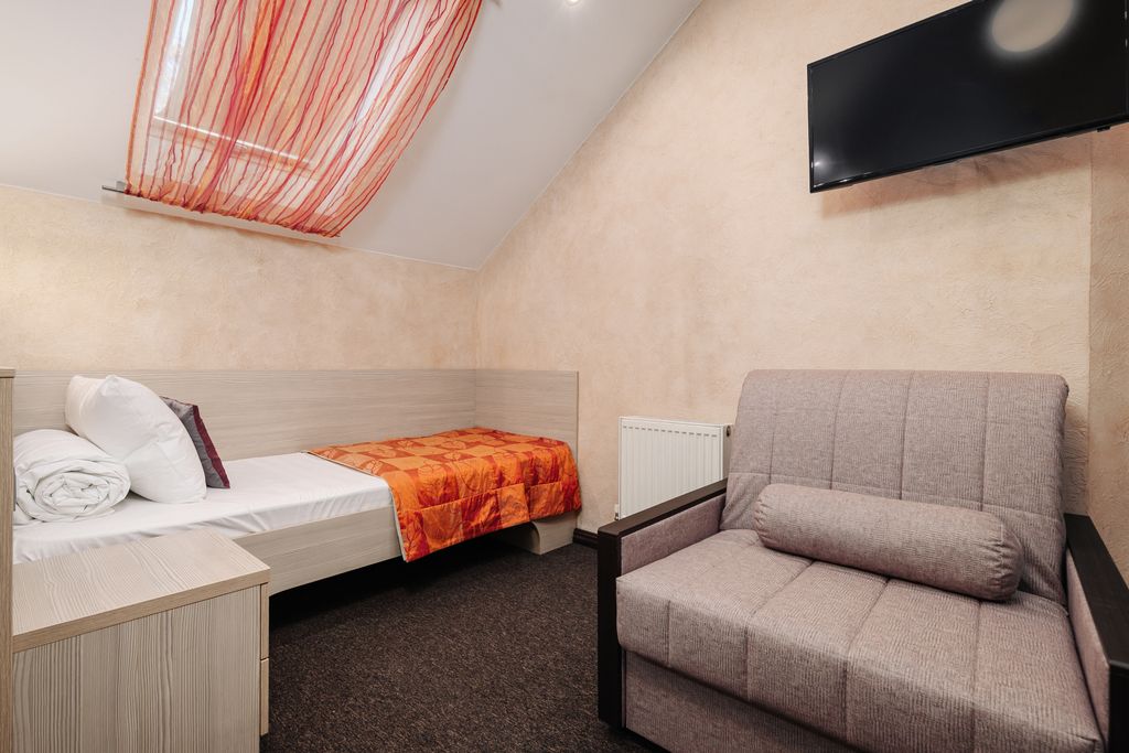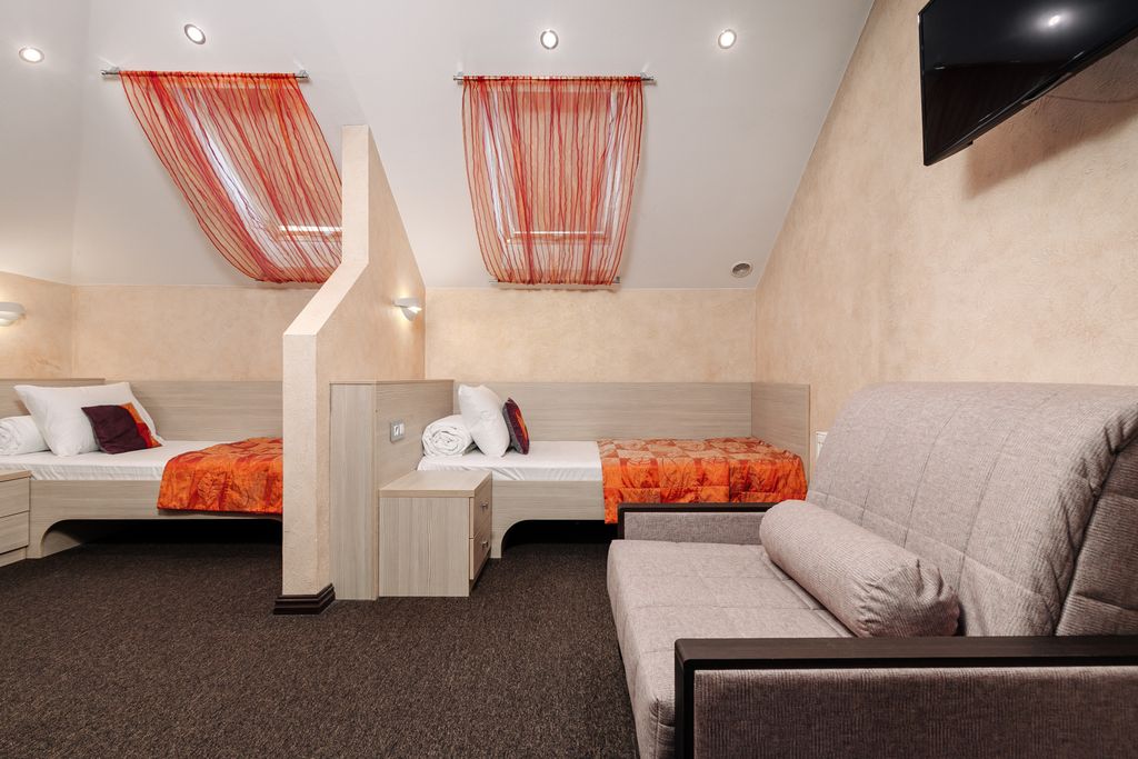 Новое Время — Трёхместный номер Стандарт с двумя раздельными кроватями на уютной мансарде с доп. местом