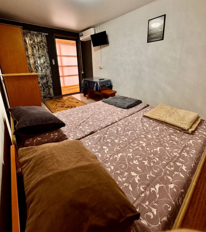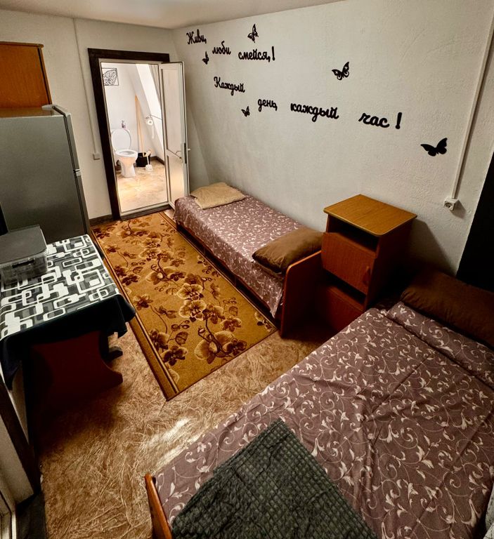 Односпальные или двуспальная кровати, стол, стулья, шкаф, прикроватные тумбочки, журнальный столик, вешалка, зеркало, кухонный гарнитур, сплит-система, холодильник, цифровое тв, интернет, декор, свч, эл. Чайник, посуда, уличная мебель Питание: общая кухня (самостоятельно) Уборка в номере по требованию (платно) Ограничения: с животными не принимаем, в номерах не курить - Пляж песчано-ракушечный - 0 минут (на пляже) - Центр развлечений - 8-10 минут - Аквапарк - 15 минут - Дельфинарий - 8-10 минут - Рынок - 10 минут - Магазин продукты - 5-7 минут - Остановка транспорта - 5 минут - Банкомат сбербанк - 15 - Аптека - 8 минут