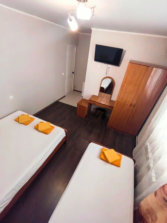 Мы находимся всего в пяти минутах ходьбы от моря, но при этом на тихой улочке, что обеспечивает спокойный ночной сон. В нашем отеле просторные холлы, уютные номера, мангальная зона и большая кухня, для самостоятельного приготовления пищи. Во всех номерах постелен новый ламинат, а некоторые из них обновлены новыми обоями. В пяти минутах ходьбы от нас расположены такие достопримечательности, как дельфинарий, музей восковых фигур, террариум, океанариум, один из самых больших бассейнов с морской водой в европе, аттракционы, караоке, детский аквапарк, а также зелёный парк с детскими спортивно-игровыми площадками. В непосредственной близости множество кафе, столовых, ресторанов, магазинов, в том числе сетевых - магнит, пятёрочка, перекрёсток, к&б и др. Пляжи: чкаловский, причал, самые оборудованные на побережье (душевые, раздевалки, туалеты, медпункты, аттракционы, кафе). Вниманию сомневающихся! На побережье сочи и адлера мазута, стеарина, пальмового масла и другой дряни нет и не