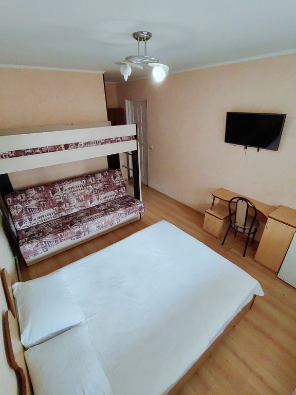 Мы находимся всего в пяти минутах ходьбы от моря, но при этом на тихой улочке, что обеспечивает спокойный ночной сон. В нашем отеле просторные холлы, уютные номера, мангальная зона и большая кухня, для самостоятельного приготовления пищи. Во всех номерах постелен новый ламинат, а некоторые из них обновлены новыми обоями. В пяти минутах ходьбы от нас расположены такие достопримечательности, как дельфинарий, музей восковых фигур, террариум, океанариум, один из самых больших бассейнов с морской водой в европе, аттракционы, караоке, детский аквапарк, а также зелёный парк с детскими спортивно-игровыми площадками. В непосредственной близости множество кафе, столовых, ресторанов, магазинов, в том числе сетевых - магнит, пятёрочка, перекрёсток, к&б и др. Пляжи: чкаловский, причал, самые оборудованные на побережье (душевые, раздевалки, туалеты, медпункты, аттракционы, кафе). Вниманию сомневающихся! На побережье сочи и адлера мазута, стеарина, пальмового масла и другой дряни нет и не