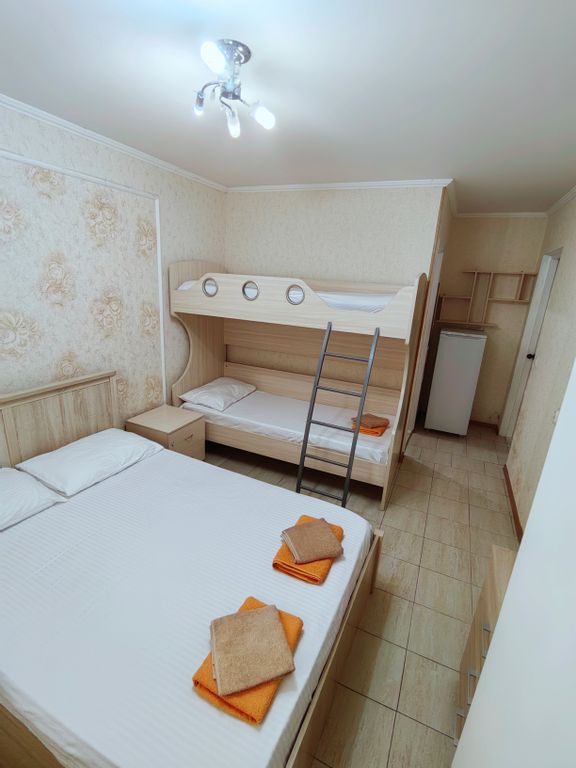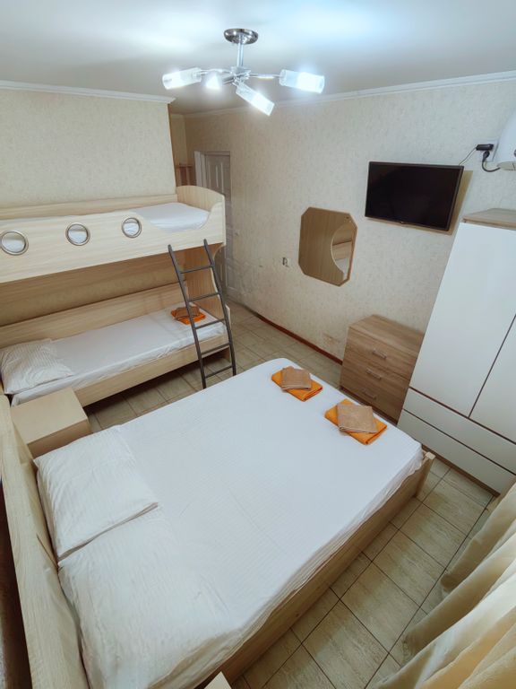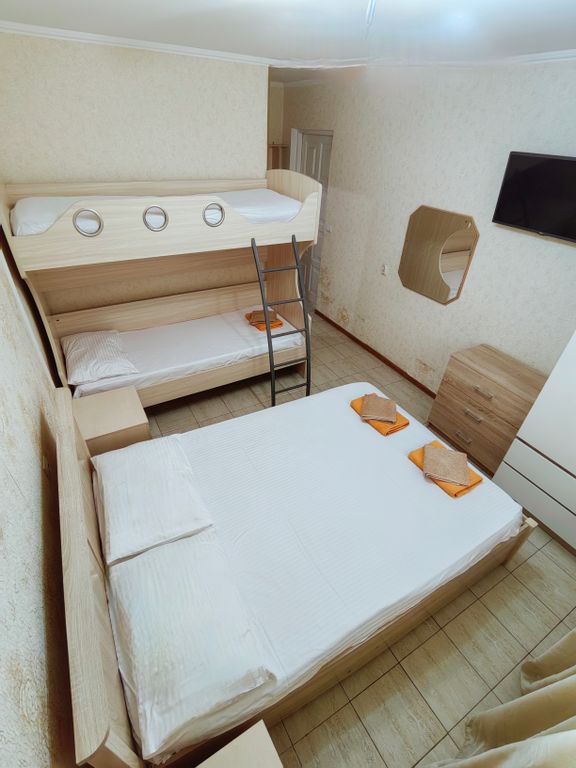 Мы находимся всего в пяти минутах ходьбы от моря, но при этом на тихой улочке, что обеспечивает спокойный ночной сон. В нашем отеле просторные холлы, уютные номера, мангальная зона и большая кухня, для самостоятельного приготовления пищи. Во всех номерах постелен новый ламинат, а некоторые из них обновлены новыми обоями. В пяти минутах ходьбы от нас расположены такие достопримечательности, как дельфинарий, музей восковых фигур, террариум, океанариум, один из самых больших бассейнов с морской водой в европе, аттракционы, караоке, детский аквапарк, а также зелёный парк с детскими спортивно-игровыми площадками. В непосредственной близости множество кафе, столовых, ресторанов, магазинов, в том числе сетевых - магнит, пятёрочка, перекрёсток, к&б и др. Пляжи: чкаловский, причал, самые оборудованные на побережье (душевые, раздевалки, туалеты, медпункты, аттракционы, кафе). Вниманию сомневающихся! На побережье сочи и адлера мазута, стеарина, пальмового масла и другой дряни нет и не