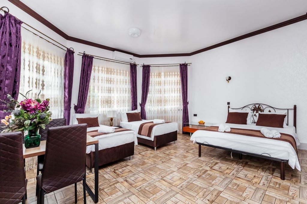 Все гостевые комнаты и апартаменты с кухнями оформлены в современном стиле и оборудованы всей необходимой бытовой техникой. Аренда помещений доступна как посуточно, так и на более длительный срок. Мы заботимся о том, чтобы вам было уютно как дома! Комфортное проживание, парковка, бесплатный wifi, прекрасный сад, зона барбекю с беседкой и мангалами, бассейн с шезлонгами, бильярдная — к вашим услугам! Гостевой дом «у Оксаны» - это семейный бизнес, который начал свою историю более 20 лет назад. С первого дня открытия мы стараемся предоставить нашим гостям лучший сервис с индивидуальным подходом к каждому. Первый гостевой дом расположенный в самом центре г. Сочи на ул. Нагорной 2б, был небольшим и уютным домом. С увеличением количества постоянных клиентов, и более невозможным расширением, мы решили построить с нуля новый объект с учетом наработанного опыта. В гостевом доме «у Оксаны» на ул. Пионерской 130г, вам доступен более широкий выбор номеров под разнообразные потребности наших кли