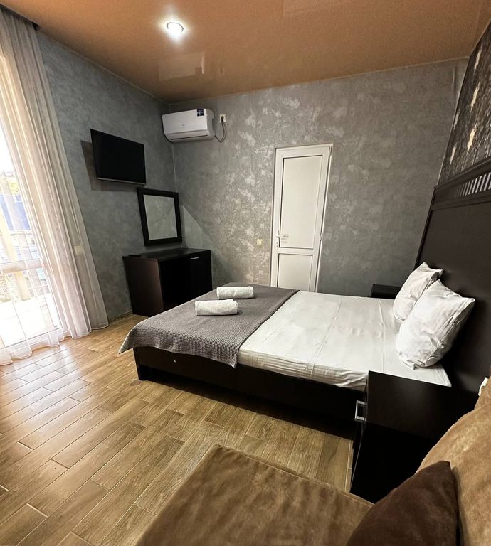 Добро пожаловать в гостевой дом «У Сати», ваш идеальный уголок для отдыха на черноморском побережье! Местоположение: Гостевой дом «У Сати» расположен в живописном поселке Вардане, всего в 10 минутах неспешной прогулки по ровной дороге до моря. В непосредственной близости находятся магазины, рынки, уютные кафе и аптеки, что делает ваше пребывание максимально удобным. Размещение: Наши номера располагаются в современном 3-этажном корпусе и предлагают вам все необходимое для комфортного отдыха. Каждый номер оснащен телевизором с широким выбором каналов, кондиционером, холодильником и собственной ванной комнатой с душем. Удобная мягкая мебель создаст атмосферу уюта и домашнего тепла, позволяя вам полностью расслабиться и насладиться отдыхом. Удобства: Гостям доступна просторная общая кухня, оборудованная всей необходимой бытовой техникой и набором посуды. Здесь вы сможете приготовить свои любимые блюда и насладиться ими в кругу семьи или друзей. На территории гостевого дома обустроена