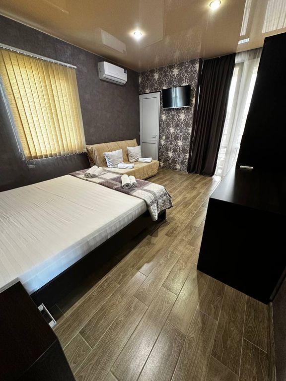 Добро пожаловать в гостевой дом «У Сати», ваш идеальный уголок для отдыха на черноморском побережье! Местоположение: Гостевой дом «У Сати» расположен в живописном поселке Вардане, всего в 10 минутах неспешной прогулки по ровной дороге до моря. В непосредственной близости находятся магазины, рынки, уютные кафе и аптеки, что делает ваше пребывание максимально удобным. Размещение: Наши номера располагаются в современном 3-этажном корпусе и предлагают вам все необходимое для комфортного отдыха. Каждый номер оснащен телевизором с широким выбором каналов, кондиционером, холодильником и собственной ванной комнатой с душем. Удобная мягкая мебель создаст атмосферу уюта и домашнего тепла, позволяя вам полностью расслабиться и насладиться отдыхом. Удобства: Гостям доступна просторная общая кухня, оборудованная всей необходимой бытовой техникой и набором посуды. Здесь вы сможете приготовить свои любимые блюда и насладиться ими в кругу семьи или друзей. На территории гостевого дома обустроена