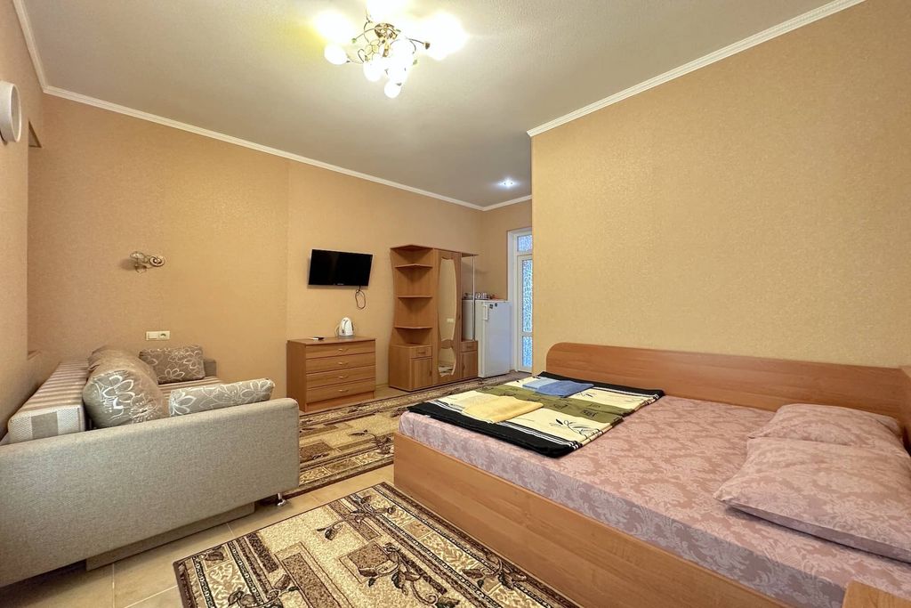 Сдаются номера в гостевом доме (июнь, июль, август, сентябрь) в 10 минутах пешком от моря. Однокомнатные номера для двоих(+ 2 доп места),двухкомнатные до пяти человек. В номерах все удобства: Wi-Fi,кондиционер, телевизор, холодильник, чайник, посуда, постельное белье, полотенца. Во дворе беседка, мангал, отдельно зоны для курения. На территории открытая общая кухня: газовая плита, микроволновки, посуда. Парковка на территории для 4-5 машин.