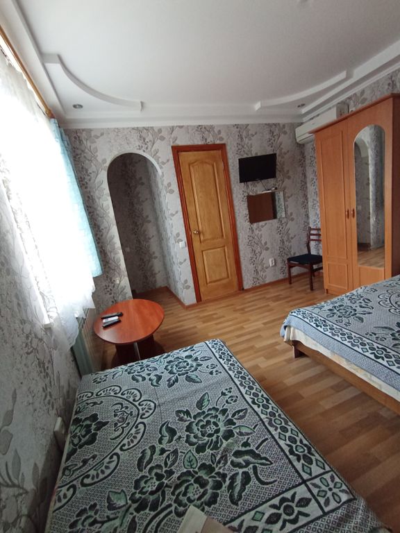 Небольшой гостевой дом из 6 номеров находится в тихом курортном районе города. 7 минут до песчаного пляжа, что очень удобно для семей с детьми. Номера 2-х, 3-х местные. Все номера расположены на втором этаже. В каждом номере есть: санузел, кондиционер, телевизор, Wi-Fi, мебель, постельное белье, полотенце, мыльные принадлежности. На первом этаже: общая кухня со столовой. В столовой: холодильники, микроволновка, электрочайник, газовые плиты, посуда, столы с табуретками. На террасе: каменный мангал и шампура с решеткой, зона отдыха со столиками и диваном. Для 3-х номеров (2-х и 3-х местных) есть открытая веранда с холодильниками, электрочайником, диванами и столиками для отдыха. Развитая инфраструктура. Рядом магазины, супермаркеты, столовые и кафе, автовокзал, ж/д вокзал, парк с детскими аттракционами. На территории: - Стиральная машина (платно-150р.) - Wi-Fi интернет - Мангал - Гладильная + утюг Смена белья через 7 дней Скидки возможны индивидуально. Бархатный сезон! Акция — 10%!
