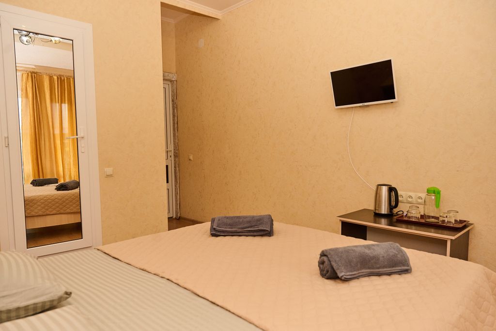 "Гостевой дом на Киевской". На всей территории работает беспроводной интернет. Стойка регистрации работает круглосуточно. Жильцы могут приготовить барбекю, для этого есть специальные принадлежности. В шаговой доступности находятся кафе и рестораны. Вы можете провести свой досуг в открытом плавательном бассейне. Для детей есть специальная игровая площадка. Расстояние до центра города составляет менее 1 км. В шаговой доступности расположен пляж и море .