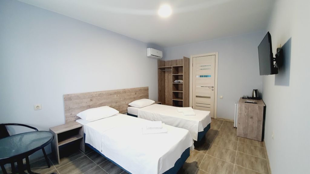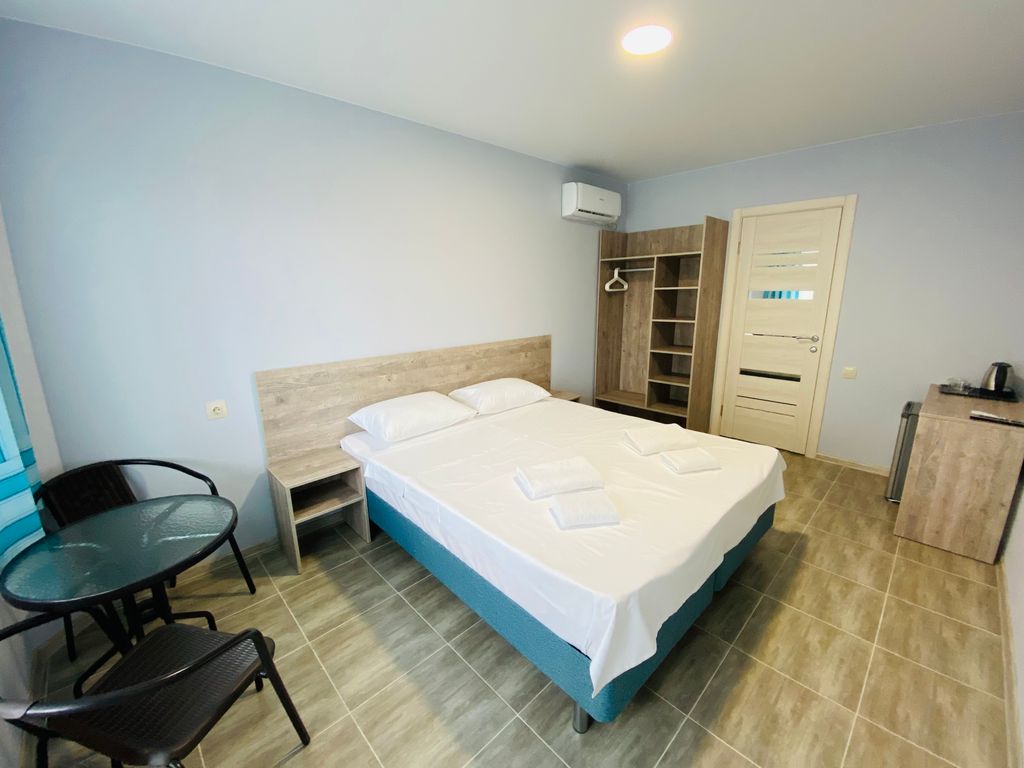 Мы находимся в джемете, 15 минут пешком до пляжа. До ближайшей столовой и продуктового магазина 5 минут пешком. Номера уютные и современные. Оснащение номеров: Ортопедические матрасы, Телевизор системы андроид, Мини холодильник с морозильной камерой, Кондиционер (охлаждение/обогрев); Чайник, кружки/стаканы, поднос, полотенце для посуды, Постельное белье-белое, хлопок, белые махровые полотенца, полотенце для ног, покрывала, одеяла; В сан/узле с душевой зоной- фен, жидкое мыло и туалетная бумага; В 4-х местных номерах микроволновая печь, На территории детская площадка, подогреваемый бассейн 5*10 м глубиной 1, 5 м с шезлонгами для загара, зона барбекю (решетки, шампура), зона для курения. Кухня-столовая для самостоятельного приготовления пищи с полным инвентарем, электроплитами- стеклокерамика, микроволновкой, холодильником с морозильной камерой. Уютная уличная терраса со столиками и креслами. Бесплатная автопарковка-под видеонаблюдением и освещением.
