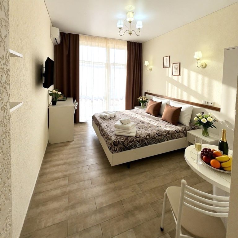 Гостевой дом «БАРВИХА» Расположен на первой береговой линии, до пляжа 250 м. Пляж оборудован навесами с шезлонгами для отдыха. На территории: Бар, столовая, бассейн для взрослых и детей, зона для загара, детская площадка на открытом воздухе, а также детская игровая комната в помещении. Все номера: повышенной комфортности для уютного проживания, различные категории вместимостью от 2х до 5 чел., от 1 ком-х до 2х ком-х. номеров с балконом, а также с собственной террасой. В номерах: Wi-Fi, кондиционер, телевизор, мини холодильник, фен, уличная мебель, тазик, швабра, по запросу детский горшок. Кроме того, мы предлагаем услуги прачечной, на каждом этаже имеется гладильная доска и утюг, а также микроволновая печь для вашего удобства. Идеально подойдут как для пар, так и для семей с детьми. Насладитесь тишиной, уютом и морским воздухом уже с первых дней отдыха! Любители водных процедур оценят взрослый и детский бассейн. Дл