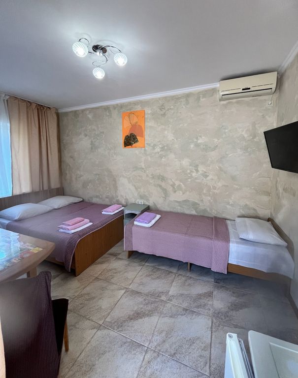 Первый канал телевидения орт выбрал наш гостевой дом для съемок сериала "дачники". На территории гостевого дома находится бассейн с подогревом! (диаметр 417, глубина 122). Три кухни для самостоятельного приготовления пищи. Зона отдыха - находится под тенью виноградной арки, на которой стоят столики и стулья для отдыха. Шашлычная зона оборудована всем необходимым (мангал, шампура). Специально отведенное место для курения. Теннисный стол с ракетками. К услугам гостей представлены номера разной категории, оборудованные всем необходимым для комфортного проживания. В каждой номере — сплит-система, телевизор, холодильник, санузел, необходимая мебель. Гостевой дом расположен в тихом месте города. По улице гоголя проходит тенистая аллея до галечного пляжа. Расстояние до галечного пляжа 600-700 м. - 8 мин. До песчаного пляжа 1200 м. - 20 мин. Рядом есть продуктовые магазины, аптека, кафе, столовая — 5 мин. Набережная - 8 мин. У нас семейный отдых, не для шумных компаний