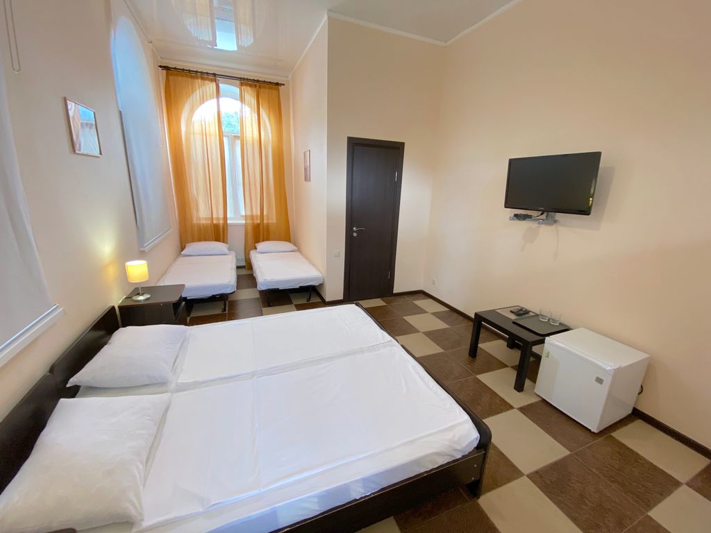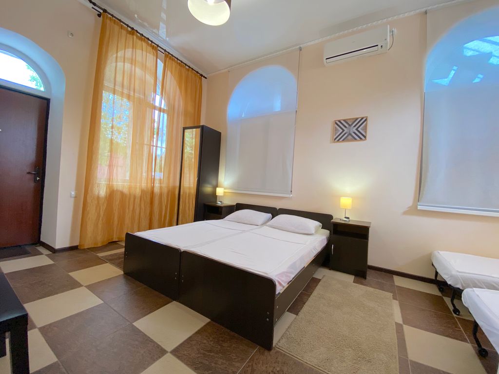 Вилла "Вишнёвая" находится в тихом месте, где нет шума от машин, дискотек и толп отдыхающих. К услугам наших гостей бесплатная парковка, кухня, площадка для отдыха в тени фруктовых деревьев с мангалом и павильоном. На территории есть детская площадка, гамак, площадка со столиками и каркасный бассейн. Наше домовладение это отдельно-стоящее трёхэтажное здание, где на первом этаже находятся 2 комнаты, на втором и третьем этажах по 4 комнаты. Все комнаты оборудованы сан-узлами, кондиционерами, ТВ и мини-холодильниками. На втором и третьем этажах в каждой комнате есть балкон.