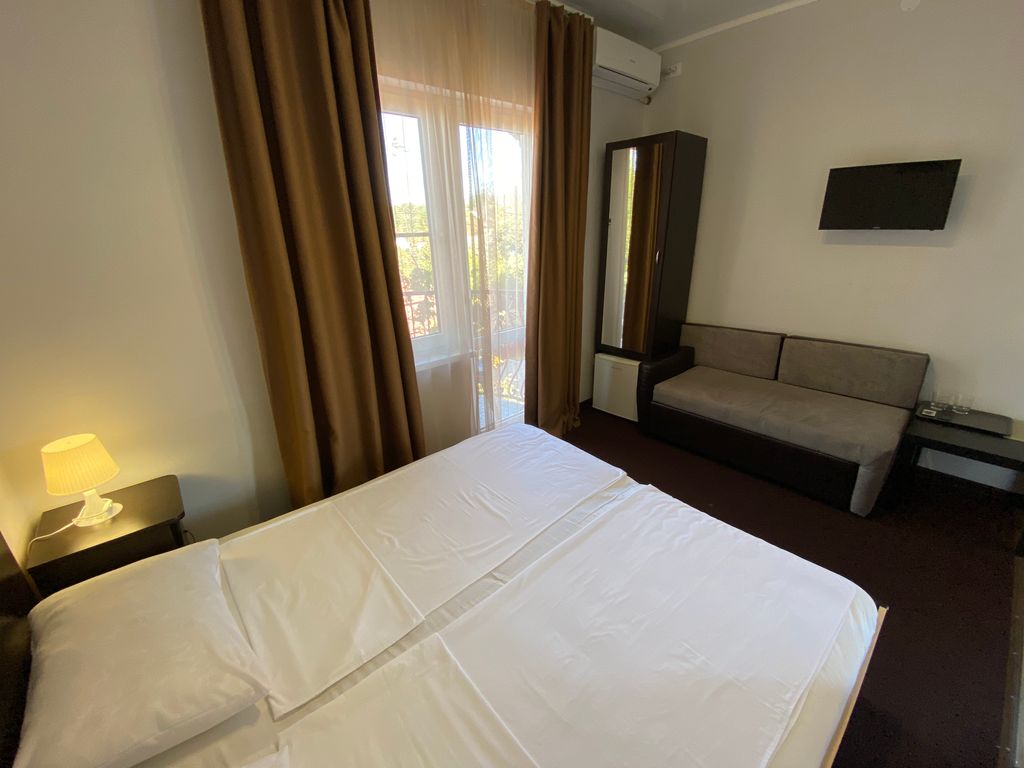 Вилла "Вишнёвая" находится в тихом месте, где нет шума от машин, дискотек и толп отдыхающих. К услугам наших гостей бесплатная парковка, кухня, площадка для отдыха в тени фруктовых деревьев с мангалом и павильоном. На территории есть детская площадка, гамак, площадка со столиками и каркасный бассейн. Наше домовладение это отдельно-стоящее трёхэтажное здание, где на первом этаже находятся 2 комнаты, на втором и третьем этажах по 4 комнаты. Все комнаты оборудованы сан-узлами, кондиционерами, ТВ и мини-холодильниками. На втором и третьем этажах в каждой комнате есть балкон.