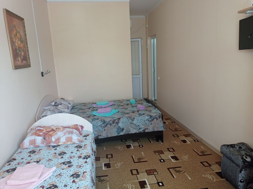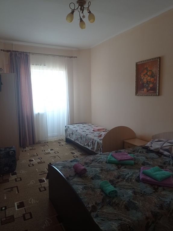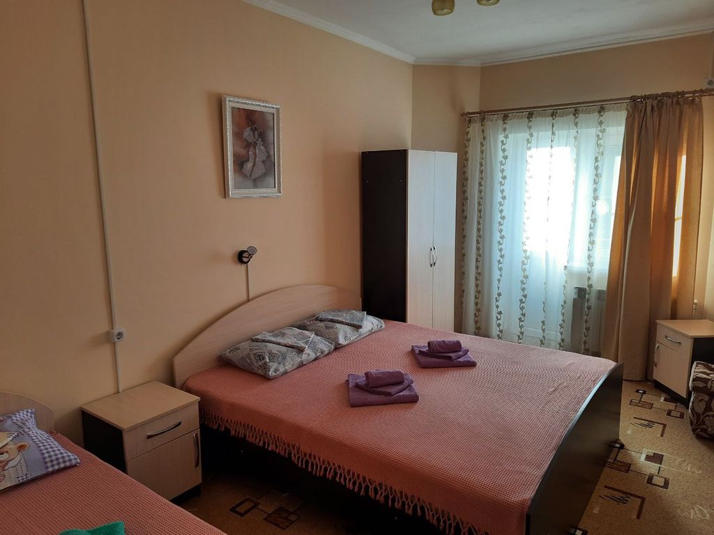 Гостевой дом на виноградной 66 расположен в 150 метрах от азовского моря, в посёлке кучугуры. Предлагаем 13 уютных номеров 3х, 4х и двухкомнатных, оборудованных всем необходимым (кондиционер, тв, холодильник, сейф, фен, ванная комната) Есть общая кухня (для самостоятельного приготовления) За дополнительную плату предлагается завтрак, обед. Смена постельного белья, полотенец, уборка по графику входит в стоимость проживания. Бесплатная парковка и бесплатный wi-fi. Большой спортивный зал (теннисный стол, спортивный уголок, мешок для бокса, хореографический станок) На территории мангальная зона, беседки, батут, бассейн, детский городок, качели.