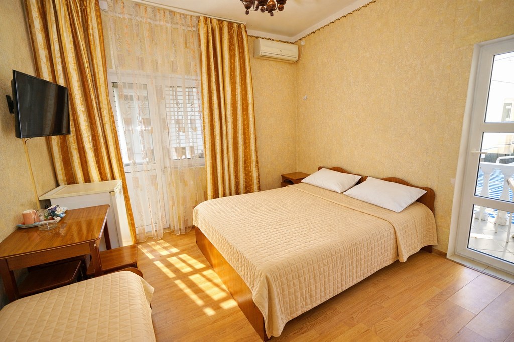 Гостевой дом «Лилия» приглашает вас насладиться отдыхом в самом сердце Лазаревского, на центральной набережной. Всего в минуте ходьбы от нас вы найдете два прекрасно оборудованных пляжа: «Лазурный» и «Калипсо». В нескольких минутах от гостевого дома расположен Парк Культуры и Отдыха — идеальное место для семейного досуга. Здесь вы сможете насладиться прогулками на свежем воздухе и весело провести время с детьми. В нашем гостевом доме вас ждут уютные номера, оформленные в современном стиле. Каждый номер оснащен всем необходимым для комфортного проживания: кондиционером, телевизором, холодильником и бесплатным Wi-Fi. Номера категорий «Стандарт» и «Комфорт» расположены с 1 по 5 этаж. Обратите внимание, что услуга выбора этажа недоступна, и при бронировании это следует учесть! Для больших компаний мы предлагаем коттедж на 8 человек с личной кухней. Это отличное место для отдыха большой семьи или компании друзей. На территории «Лилии» расположен красивый сад, в котором можно отдохнуть на св
