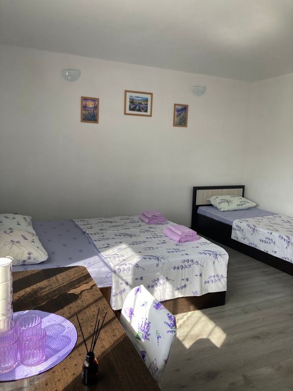 Приглашаем Вас в наш гостеприимный дом «Лаванда» в непосредственной близости как от моря, так и залива. К Вашим услугам: по домашнему уютный номер (в номере холодильник, чайник, сплит система) благоустроенная территория зона барбекю детская площадка бассейн кухня со всей необходимой посудой (микроволновка, тостер, кофеварка, холодильник) А вечером вы сможете любоваться потрясающим закатом и наслаждаться прозрачным воздухом, наполненный ароматом моря и свежестью бриза на нашей уличной террасе