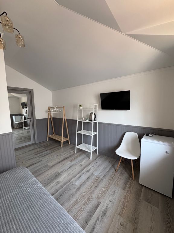 Добро пожаловать в наши уютные апартаменты в стиле «Санторини»! Мы предлагаем две прекрасно оформленные комнаты, каждая из которых оснащена двуспальной кроватью, двумя тумбочками, кондиционером, телевизором с выходом в интернет и вешалкой для вещей. В каждой комнате вас ждет комфорт и уют, а также собственный санузел для вашего удобства. Кроме того, у нас есть общая кухня на улице, где вы сможете готовить и наслаждаться трапезой с видом на живописный сад. Здесь также предусмотрена мануальная зона для отдыха и расслабления. Это идеальное место для тех, кто ищет гармонию и спокойствие в окружении природы!