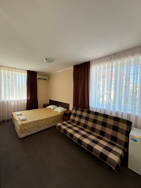 Гостевой дом «Кристина 2» в Витязево открыт для гостей на летний период. Расположен в 15−20 минутах ходьбы до пляжа. Гостевой дом представляет собой 3-этажное современное здание. В здании есть кухня для общего пользования, гладильная доска, утюг. На территории есть продуктовый магазин. А также есть детская зона отдыха, бассейн, батут и т. д. Очень уютный дворик. Хороший Wi-Fi. Зона барбекю. Гостям предоставляются принадлежности для барбекю. Для деток предоставляем бесплатно дет. кроватку, стульчик. В каждом номере: свой санузел с душем, телевизор, холодильник, сплит-система, шкаф для одежды. Предоставляются полотенца, постельное бельё. Гостевой дом обеспечен генератором и бойлером на случай отключения электроэнергии.