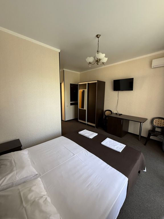 Гостевой дом «Кристина 2» в Витязево открыт для гостей на летний период. Расположен в 15−20 минутах ходьбы до пляжа. Гостевой дом представляет собой 3-этажное современное здание. В здании есть кухня для общего пользования, гладильная доска, утюг. На территории есть продуктовый магазин. А также есть детская зона отдыха, бассейн, батут и т. д. Очень уютный дворик. Хороший Wi-Fi. Зона барбекю. Гостям предоставляются принадлежности для барбекю. Для деток предоставляем бесплатно дет. кроватку, стульчик. В каждом номере: свой санузел с душем, телевизор, холодильник, сплит-система, шкаф для одежды. Предоставляются полотенца, постельное бельё. Гостевой дом обеспечен генератором и бойлером на случай отключения электроэнергии.
