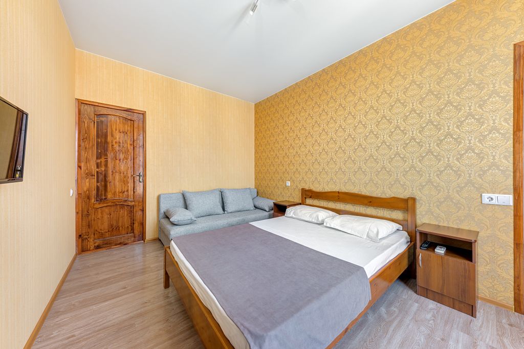 Виктория, гостевой дом с бассейном в Голубой бухте Наш дом находится в тихом микрорайоне г. Геленджик- Голубая бухта. Это место идеально подходит для спокойного семейного отдыха и для людей, уставших от городской суеты. Мы можем предложить вам комфортабельные номера с удобствами. Проведение шумных, пьяных вечеринок и посиделок на территории дома после 23 часов категорически запрещено. Ваш отдых не должен мешать другим отдыхающим и рядом проживающим людям. В шаговой доступности от дома расположены 3 галечных пляжа с открытым чистым морем, путь к которым занимает от 4 до 15 минут. Ближние пляжи не многолюдны. Рядом с нашим домом находится остановка общественного транспорта, откуда вы сможете за 30 минут добраться до центра города Геленджик и окунуться в пучину развлечений, музыки и городской жизни. Так же, рядом расположен продуктовый магазин и два кафе. На территории дома имеется парковка, бассейн 330*730, с постепенным увеличением глубины от 120 до 170 см, детская игровая площадка с ба