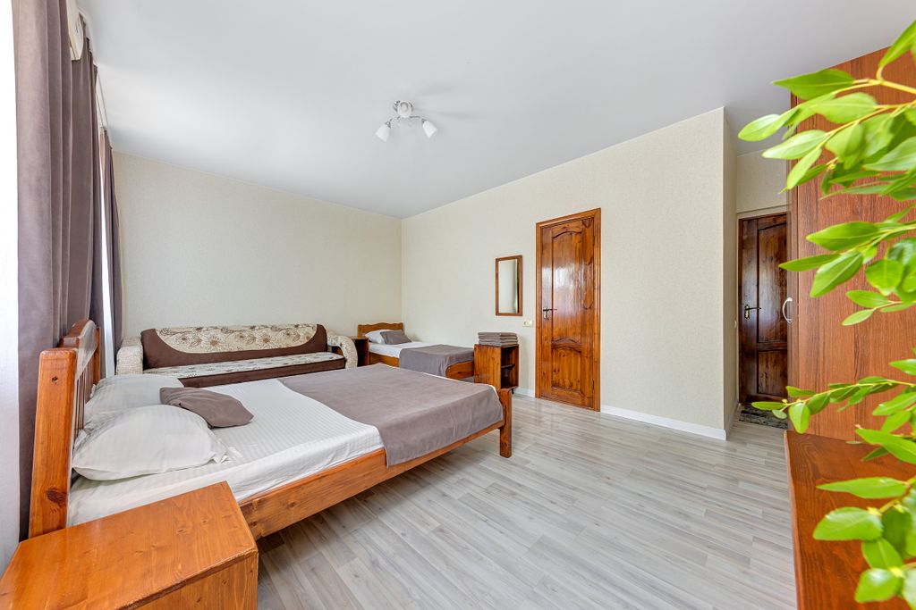 Виктория, гостевой дом с бассейном в Голубой бухте Наш дом находится в тихом микрорайоне г. Геленджик- Голубая бухта. Это место идеально подходит для спокойного семейного отдыха и для людей, уставших от городской суеты. Мы можем предложить вам комфортабельные номера с удобствами. Проведение шумных, пьяных вечеринок и посиделок на территории дома после 23 часов категорически запрещено. Ваш отдых не должен мешать другим отдыхающим и рядом проживающим людям. В шаговой доступности от дома расположены 3 галечных пляжа с открытым чистым морем, путь к которым занимает от 4 до 15 минут. Ближние пляжи не многолюдны. Рядом с нашим домом находится остановка общественного транспорта, откуда вы сможете за 30 минут добраться до центра города Геленджик и окунуться в пучину развлечений, музыки и городской жизни. Так же, рядом расположен продуктовый магазин и два кафе. На территории дома имеется парковка, бассейн 330*730, с постепенным увеличением глубины от 120 до 170 см, детская игровая площадка с ба