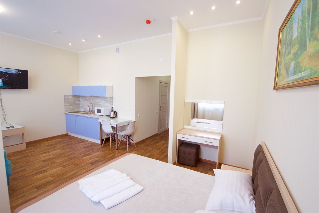 "Апартель" - федеральная сеть апарт-отелей высокого уровня, где каждый найдет для себя подходящий вариант размещения. Отель находится в самом сердце делового центра города на "Взлётке", в спокойном Советском районе. В шаговой доступности от отеля - МВДЦ Сибирь и Кристалл Арена, ТРЦ Июнь и ТК Ньютон, ТРЦ Планета, ДЦ Первая Башня и ДЦ Вертикали. Апарт-отель предлагает 150 апартаментов различных типов и классов. Каждый номер отличается удобной планировкой, стильной современной мебелью и большим количеством свободного пространства. Все апартаменты оборудованы электронными дверными замками, кухнями с холодильником и чайником, утюгом. В собственной ванной комнате есть душевая кабина или ванна, халат, тапочки, фен и туалетно-косметические принадлежности. Во всех апартаментах есть Wi-Fi. Кроме того, отель оборудован собственной парковкой, что позволяет нашим гостям оставлять свои автомобили в полной безопасности. На территории апарт-отеля работает ресторан, где можно вкусно