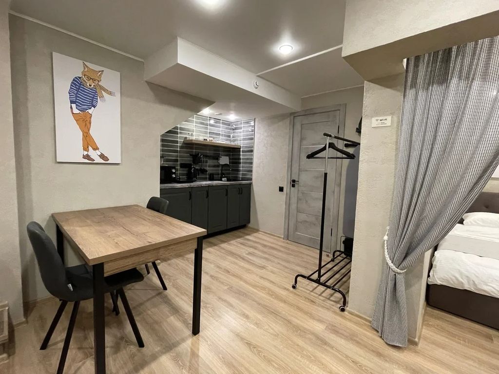 Бюджетный апарт-отель в центре города, с современным дизайном, который включает в себя 5 отдельных апартаментов. В каждых апартаментах: кухня, санузел, кровать(и), шкаф, телевизор. Везде работает бесплатный Wi-Fi. Удобная транспортная доступность и развитая инфраструктура (рядом большой ТЦ, рестораны, супермаркеты).