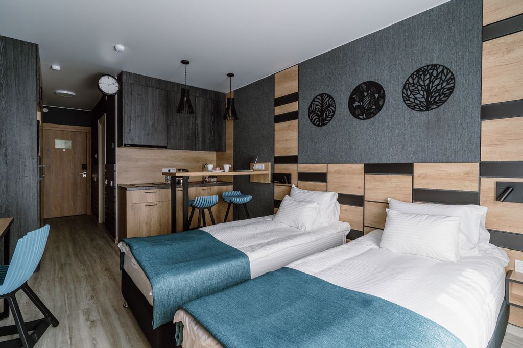 ApartStel это новый современный апарт-отель 3*, который находится прямо напротив станции метро Бухарестская. Хорошая транспортная доступность позволит Вам легко добраться от нас до любой точки города. Также без труда Вы сможете приехать к нам с вокзалов или из аэропорта. У нас представлены различные категории апартаментов, от Студий с кухней до дизайнерских Люксов с ванной внутри комнаты, поэтому мы готовы разместить гостей, заезжающих как для рабочих поездок, так и для проживания с семьей или романтического вечера для двоих. Вне зависимости от категории наши номера оборудованы всем необходимым для комфортного проживания: в каждом из них есть кондиционер, высокоскоростной wi-fi, Smart-TV, сейф, утюг и гладильная доска, отдельная ванная комната. Для гостей с детьми до 4-ех лет предоставляем детскую кроватку, коляску, стульчик для питания и детскую посуду (требуется заблаговременное бронирование. услуга доступна не во всех категориях номеров).
