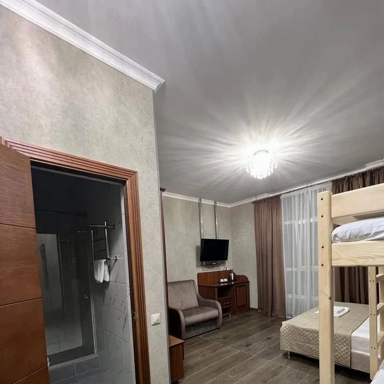"Олимп" расположен в городе Сочи, на улице Ружейная, дом 49/3. В шаговой доступности находятся: образовательный центр «Сириус», Сочи Автодром, Олимпийский парк, Сочи - парк, стадион Фишт, планетарий, картинг, поющие фонтаны. Это очень удобно для тех гостей, которые хотят посетить достопримечательности города Сочи. На пляж предусмотрен бесплатный трансфер в летний период, предоставляемый по запросу гостей. Наш гостевой дом предоставляет гостям множество удобств, включая бесплатную парковку, wi-fi на всей территории, стиральную машину и гладильные принадлежности, открытый детский бассейн, детскую площадку и батут. Мы предлагаем 15 комнат различной вместимости - от двух до шестиместных. В каждой комнате есть собственный санузел, кондиционер, телевизор, холодильник, фен, электрический чайник, отопление в холодный сезон и бесплатный Wi-Fi. В двухместной комнате большая двуспальная кровать. Стоимость дополнительного места - 700 рублей за ночь. С желанием предложить Вам максимальный