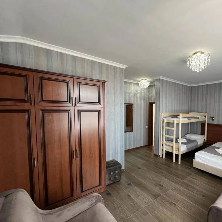 "Олимп" расположен в городе Сочи, на улице Ружейная, дом 49/3. В шаговой доступности находятся: образовательный центр «Сириус», Сочи Автодром, Олимпийский парк, Сочи - парк, стадион Фишт, планетарий, картинг, поющие фонтаны. Это очень удобно для тех гостей, которые хотят посетить достопримечательности города Сочи. На пляж предусмотрен бесплатный трансфер в летний период, предоставляемый по запросу гостей. Наш гостевой дом предоставляет гостям множество удобств, включая бесплатную парковку, wi-fi на всей территории, стиральную машину и гладильные принадлежности, открытый детский бассейн, детскую площадку и батут. Мы предлагаем 15 комнат различной вместимости - от двух до шестиместных. В каждой комнате есть собственный санузел, кондиционер, телевизор, холодильник, фен, электрический чайник, отопление в холодный сезон и бесплатный Wi-Fi. В двухместной комнате большая двуспальная кровать. Стоимость дополнительного места - 700 рублей за ночь. С желанием предложить Вам максимальный