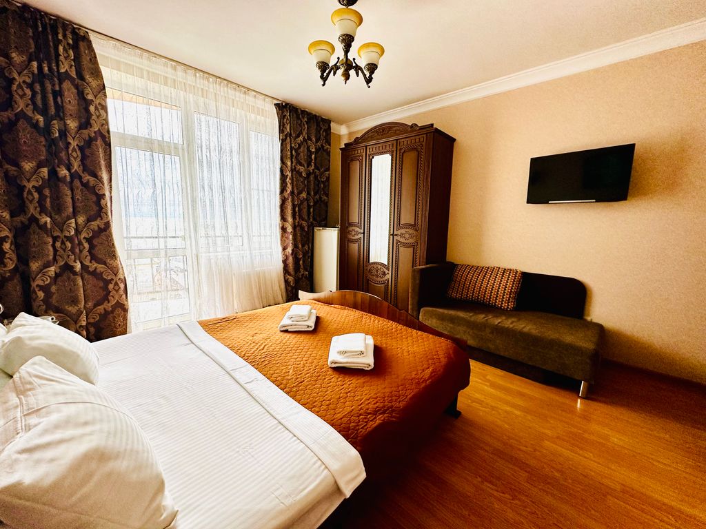 Гостевой дом «Эльбрус» — ваш идеальный отдых на берегу моря! Главное преимущество: Всего 1 минута пешком до пляжа с потрясающим видом на море и горы! Ваш личный уголок: На балконе каждого номера есть стол и стулья (номера на 1 этаже в основном корпусе и номера-студии во 2 корпусе без балконов!!!), чтобы вы могли наслаждаться природой с максимальным комфортом. Идеальное расположение: рядом продуктовые магазины и уютные кафе, остановки общественного транспорта в 10 минутах ходьбы, железнодорожная станция в 20 минутах пешком. Отсюда легко добраться до центра Сочи, Адлера, Абхазии и Красной Поляны. Отдых и развлечения — в шаговой доступности: в 15 минутах ходьбы вас ждёт Курортный городок с прогулочной зоной, Аквапарком "Капитан Пират", Океанариумом, Дельфинарием, кафе, магазинами и развлечениями для детей. В каждом стандартном номере: - душ/ванна и санузел, - двуспальная или односпальные кровати - шкаф для одежды - прикроватные тумбы - холодильник - телевизор - набор посуды -