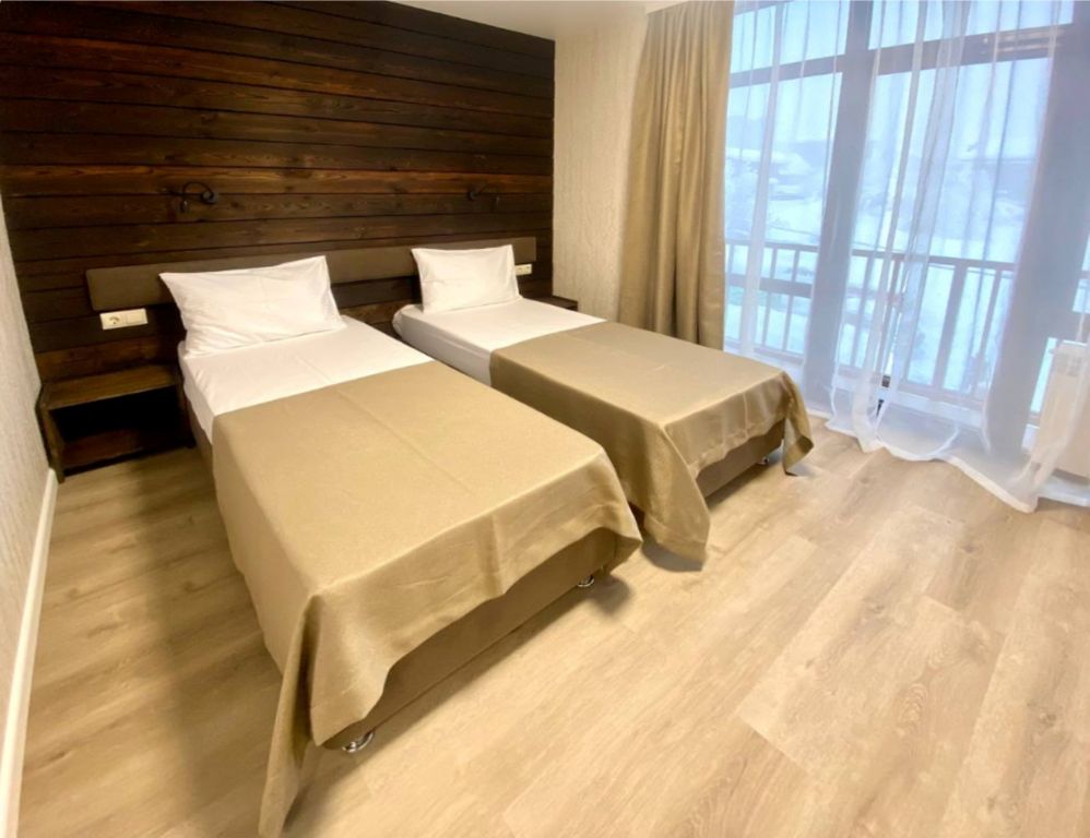 Отель «Альпийский двор» находится в центре курортного места Красная Поляна. Предлагаются номера разной категории, оборудованные необходимой мебелью и современной техникой. В некоторых есть выход на балкон с видом на горы. Гости бесплатно могут подключиться к Интернету. Для путешественников на машине организована бесплатная парковка. Допускается размещение с питомцами за дополнительную плату. В лобби работает кафе, также имеется зона барбекю предоставляемая гостям за дополнительную плату. Для детей оборудована детская площадке во дворе.